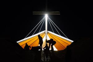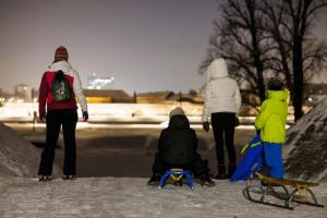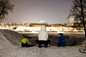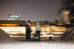 Osijek, 08.01.2026 - Djeca u nocnom sanjkanju u gradu