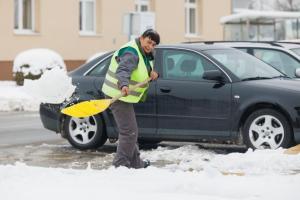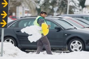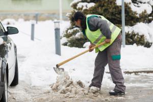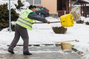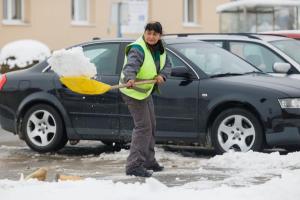 Podgorac, 09.01.2026 - Pedesetsedmogodisnja djelatnica Komunalca Opcine Podgorac cisti parking