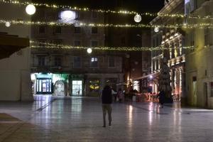 Split, 12.01.2026 - Opustjele ulice i trgovi u gradskoj jezgri za hladne zimske veceri
