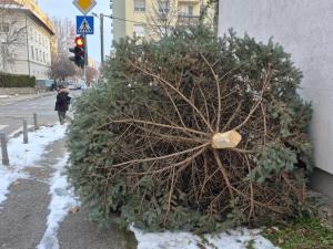 Zagreb, 13.01.2026 - Veliko bozicno drvce odbaceno na nogostupu u naselju Knezija