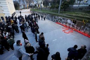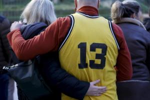 Split, 15.01.2026 - Paljenjem svijeca Splicani se oprastaju od bivseg kosarkaska i trenera...