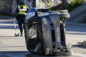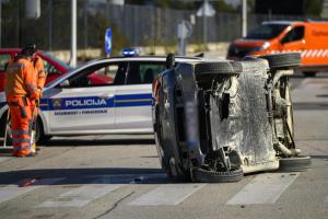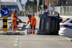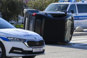 Split, 20.01.2026 - Smart se prevrnuo u prometnoj nesreci u ulici Put Supavla