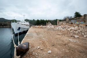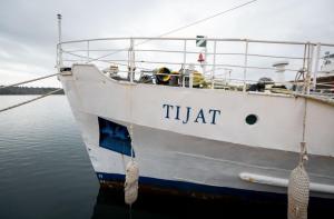 Sibenik, 22.01.2026 - Bivsi putnicki brod Jadrolinije Tijat na vezu u luci TEF