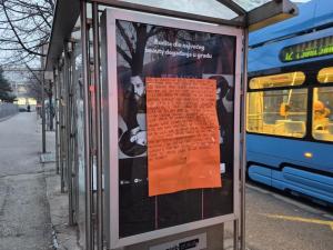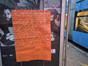 Zagreb, 23.01.2026 - Plakat s pricom o nesretnoj ljubavi na tramvajskoj stanici