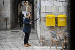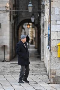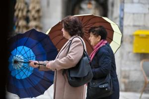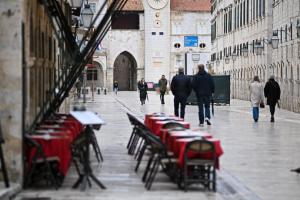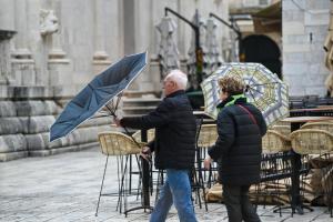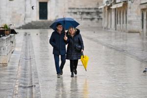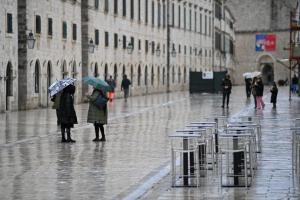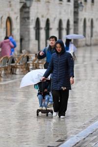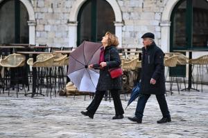 Dubrovnik, 25.01.2026 - Gradjani u setnji Stradunom u kisno nedjeljno poslijepodne