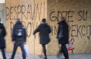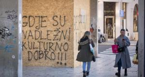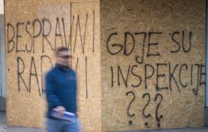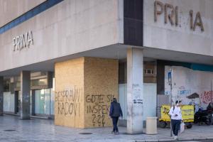 Split, 27.01.2026 - Na zatvorenom i zapustenom objektu Prima Grad osvanuli su natpisi o bespravnoj...
