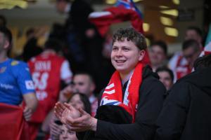 Herning, 30.01.2026 - Rukomet: Hrvatski navijaci na utakmici polufinala Europskog prvenstva,...