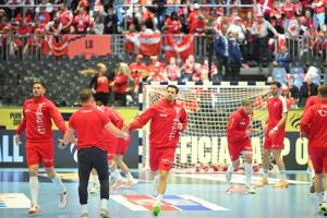 Herning, 30.01.2026 - Rukomet: Zagrijavanje igraca uoci utakmice polufinala Europskog prvenstva,...