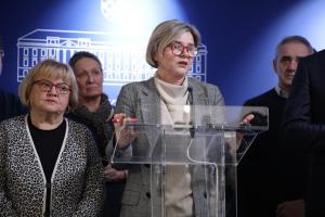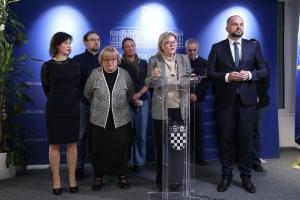 Zagreb, 02.02.2026 - Konferencija za medije Stranke Mozemo, SDP, Glas, Centar i Dalija Oreskovic...