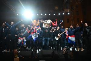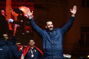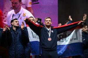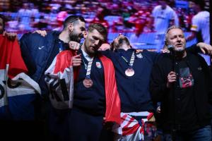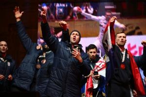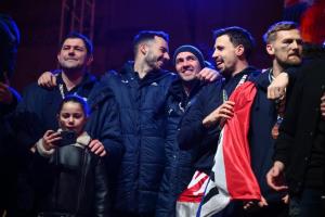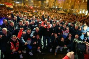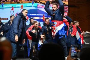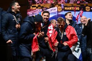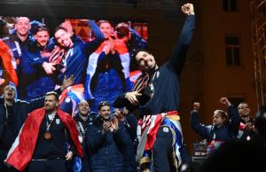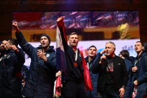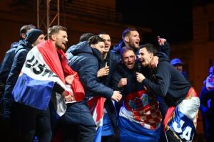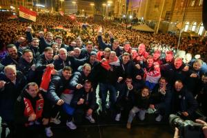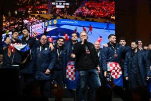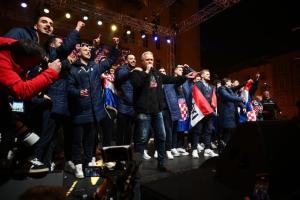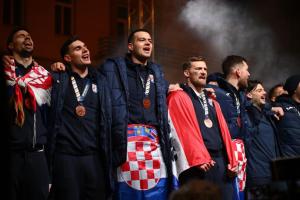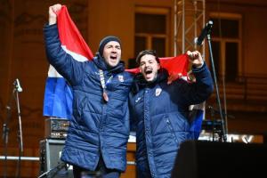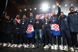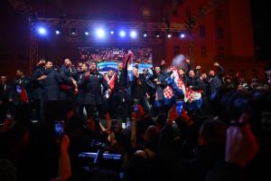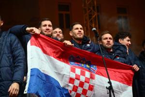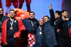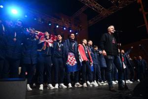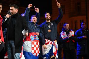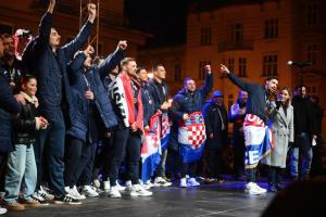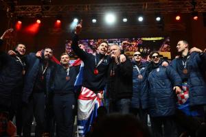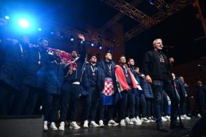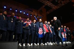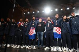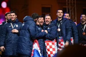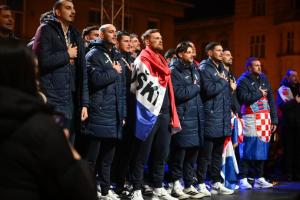 Zagreb, 02.02.2026 - Docek hrvatske rukometne reprezentacije na Trgu bana Jelacica