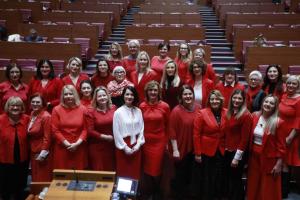 Zagreb, 06.02.2026 - Saborske zastupnice obiljezile Dan crvenih haljina