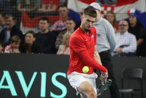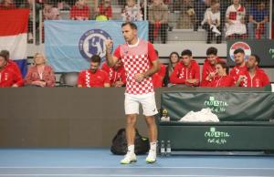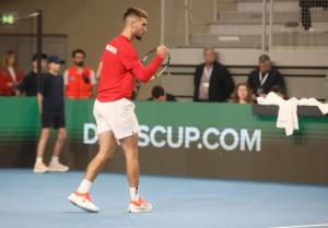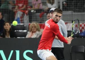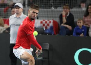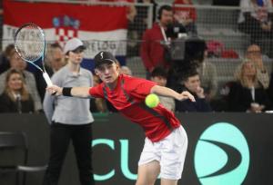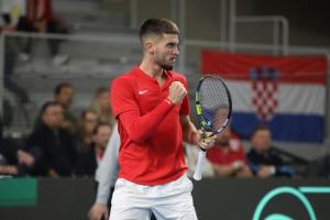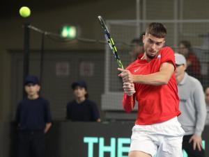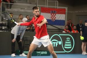 Varazdin, 07.02.2026 - Tenis: Prizmic - Moller, mec Davis Cup susreta Hrvatska - Danska