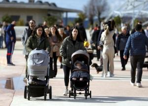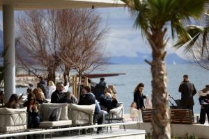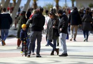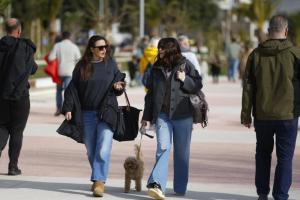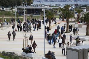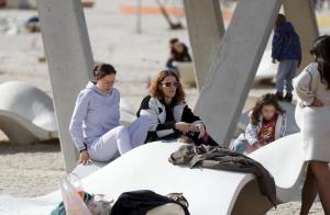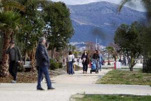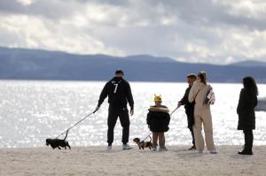 Split, 08.02.2026 - Splicani uzivaju u suncanom danu na plazi Znjan
