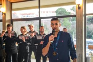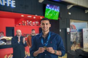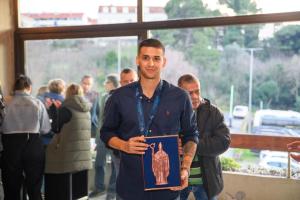 Dubrovnik, 10.02.2026 - Docek za Marka Kuraju broncanog malonogometasa s Europskog futsal prvenstva