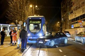 Zagreb, 10.02.2026 - Prometna nesreca na trgu Josipa Langa, sudarili se tramvaj i automobil
