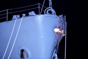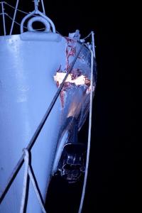 Rijeka, 13.02.2026 - Nekadasnji Titov brod Galeb ostecen u havariji koju je izazvao drugi brod...
