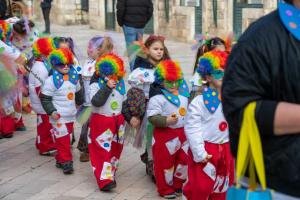 Dubrovnik, 16.02.2026 - Povorka Stradunom maskaranih djecjih vrtickih skupina