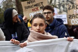 Sarajevo, 17.02.2026 - Novi prosvjed gradjana peti dan nakon iskliznuca tramvaja pri cemu je...