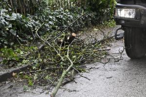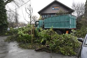 Zagreb, 20.02.2026 - Stablo iz dvorista obiteljske kuce palo na ulicu i izazvalo materijalnu...