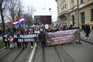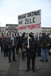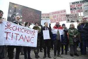 Zagreb, 21.02.2026 - Prosvjed protiv kompleksa industrijskih megafarmi i klaonica peradi u...