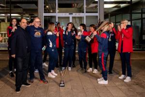 Dubrovnik, 22.02.2026 - Docek kosarkasica ZKK Ragusa nakon osvajanja Kupa Ruzica Meglaj-Rimac