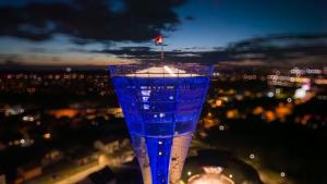 Preuzmi cijelu galerijuVukovar, 24.02.2026 - Vukovarski vodotoranj zasvijetlio je bojama ukrajinske zastave na obljetnicu...