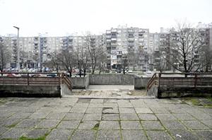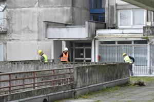 Zagreb, 02.03.2026 - Pocetak obnove platoa zgrade Kineski zid u naselju Travno