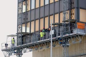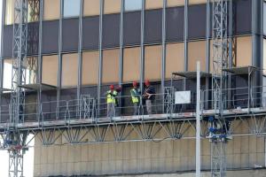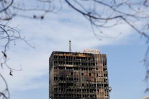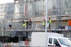 Zagreb, 04.03.2026 - Radovi na pripremi za rusenje nebodera Vjesnik