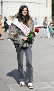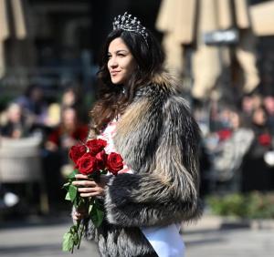 Zagreb, 07.03.2026 - Kraljica Hrvatske Lana Lourdes Rupic dijelila zenama crvene ruze u centru...