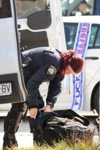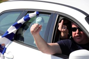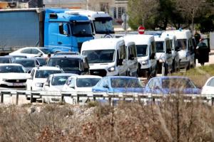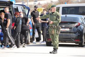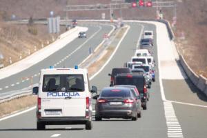 Split, 08.03.2026 - Prihvat i preprata navijaca BBB na A1 odmoristu Kozjak Jug uoci utakmice...