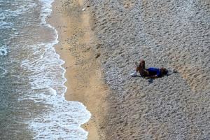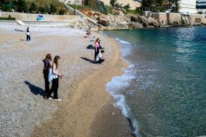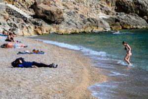 Dubrovnik, 10.03.2026 - Prvi kupaci uzivaju u suncanom proljetnom danu na plazi Banje