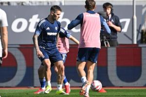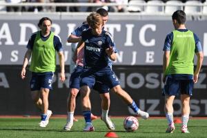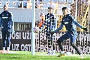 Split, 15.03.2026 - Nogomet: Zagrijavanje igraca prije pocetka utakmice Hajduk - Lokomotiva
