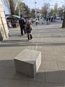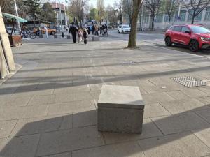 Zagreb, 25.03.2026 - Nepoznati vandali odvukli betonski blok na tramvajskoj stanici ispred...
