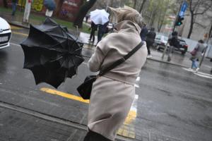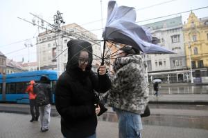 Zagreb, 26.03.2026 - Brojni kisobrani izgubili bitku s olujnim vjetrom u centru grada