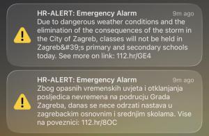 Zagreb, 27.03.2026 - Zbog opasnih vremenskih uvjeta gradjanima stigle poruke upozorenja