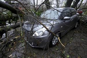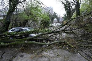 Zagreb, 27.03.2026 - Automobil zatocen pod srusenim stablom u Unskoj ulici