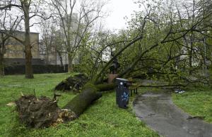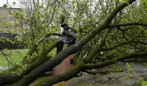 Zagreb, 27.03.2026 - Stablo ostetilo skulpturu 5. studeni, poznatu i kao spomenik Romkinji...