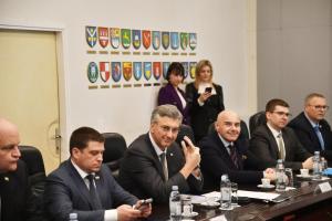 Rijeka, 27.03.2026 - Sastanak premijera Plenkovica sa zupanom Ivicom Lukanovicem i gradonacelnicom...
