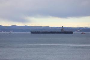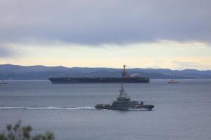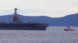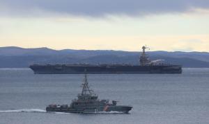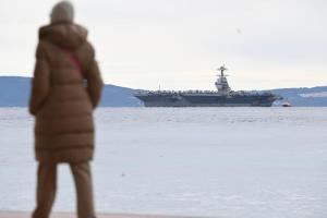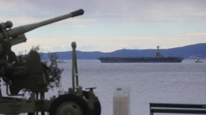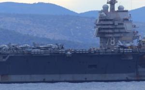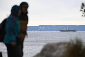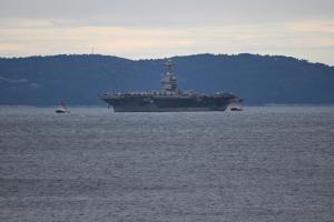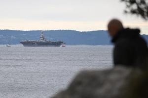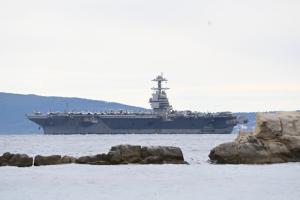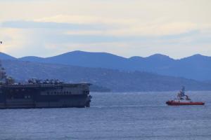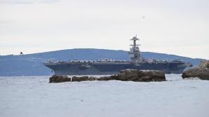 Split, 28.03.2026 - U splitsku luku uplovio je nosac zrakoplova americke ratne mornarice USS...