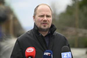 Zagreb, 28.03.2026 - Konferencija za medije dogradonacelnika Luke Korlaeta na groblju Mirogoj