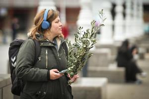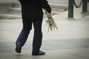 Zagreb, 29.03.2026 - Na blagdan Cvjetnice prolaznici nose blagoslovljene maslinove grancice