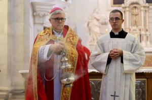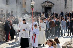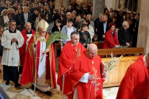 Zadar, 29.03.2026 - Nadbiskup Milan Zgrablic na Cvjetnicu predvodio procesiju i misu u katedrali...
