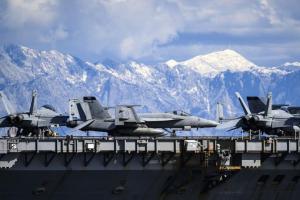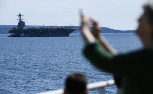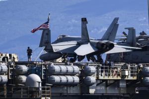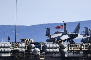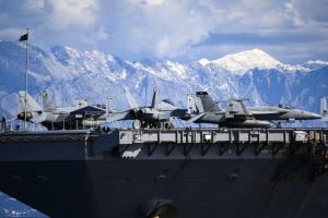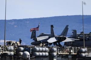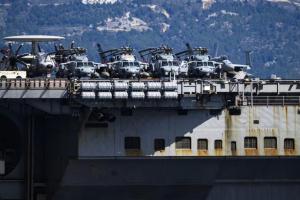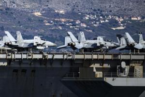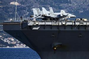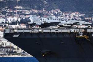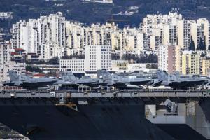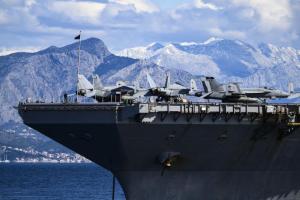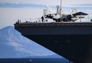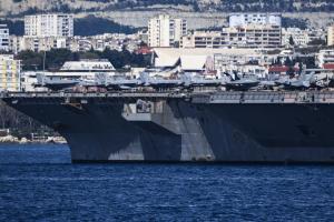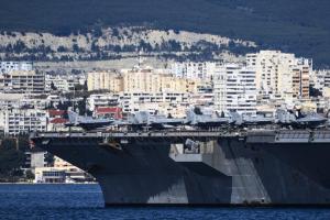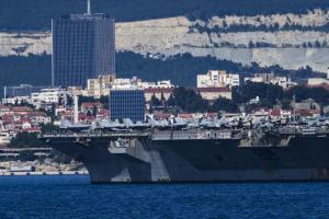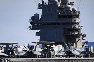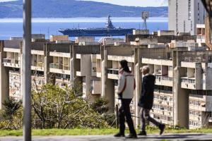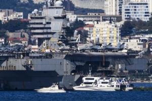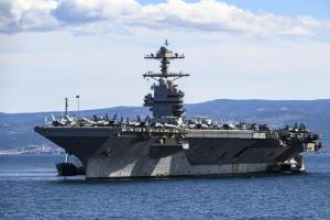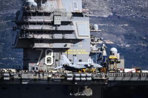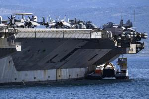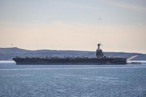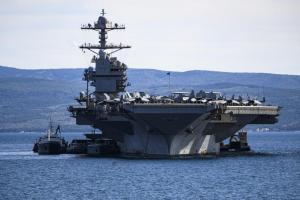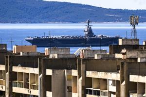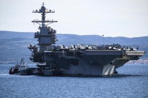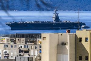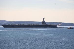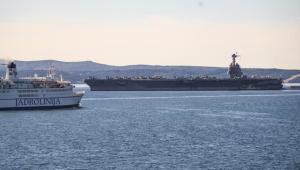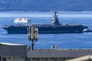 Split, 30.03.2026 - Nosac zrakoplova USS Gerald R. Ford usidren ispred trajektne luke
