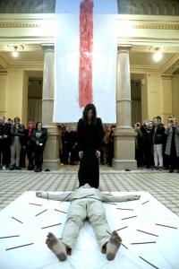 Zagreb, 03.04.2026 - Golgotska noc, perfomans Dimitrija Popovica u Nacionalnom muzeju moderne...