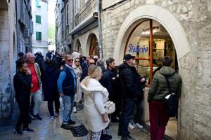 Split, 04.04.2026 - Red za pince ispred slasticarne Tradicija