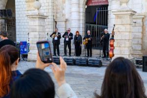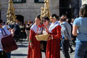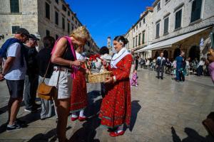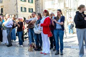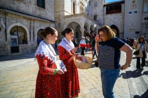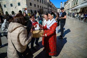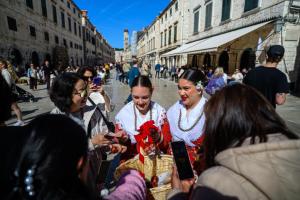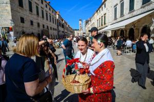Dubrovnik, 05.04.2026 - Uskrsnje prijepodne na Stradunu uz podijelu jaja i nastup klape Ragusa