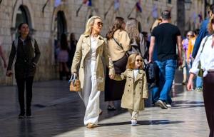 Dubrovnik, 05.04.2026 - Maja Suput sa sinom Bloomom na uskrsnje jutro prosetala Stradunom