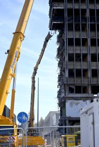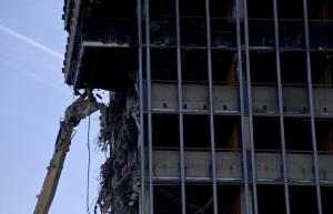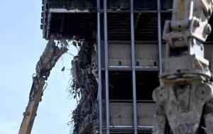 Zagreb, 09.04.2026 - Pocetak rusenja Vjesnikovog nebodera metodom grickanja