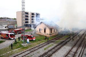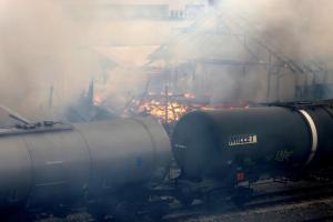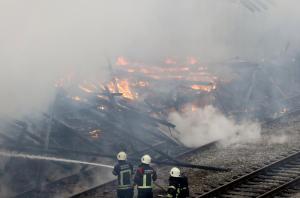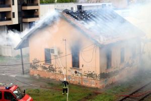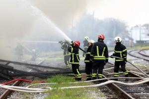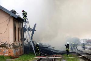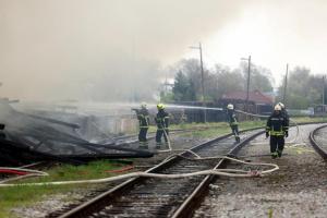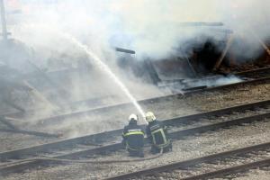 Osijek, 14.04.2026 - Pozar skladista Hrvatskih zeljeznica smjestenih uz prugu