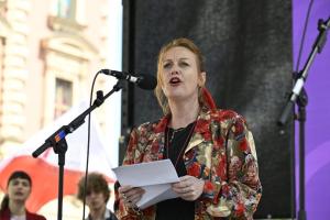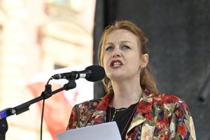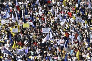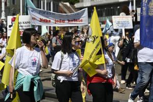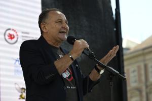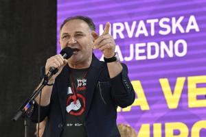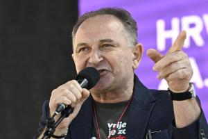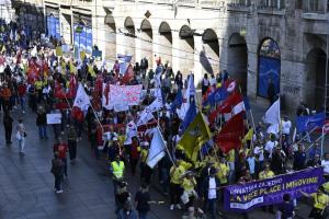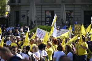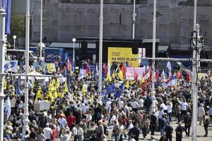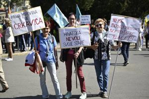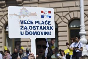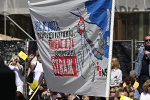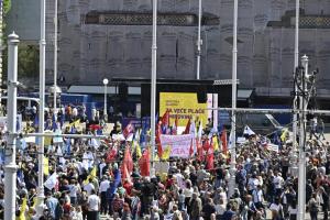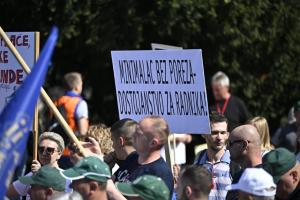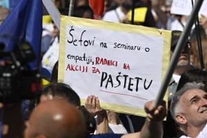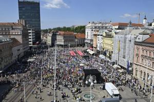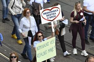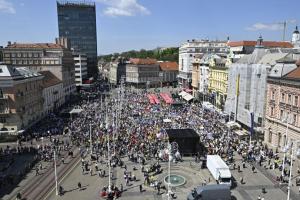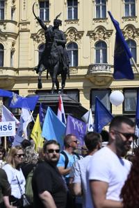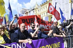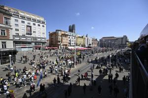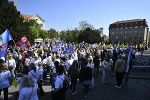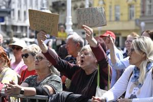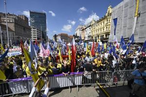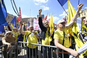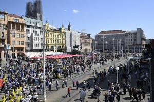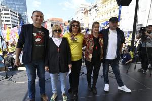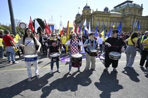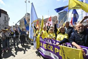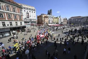 Zagreb, 18.4.2026 - Sindikalni prosvjed Hrvatska zajedno za vece place i mirovine na Trgu bana...